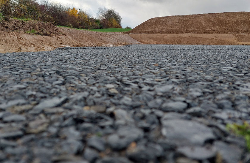 Die Erdarbeiten mit der Bodenverbesserung und Herstellung des Planums waren bis Mitte November abgeschlossen. Zu Beginn des Jahres wurde die standorteigene Trafostation angeliefert und mit dem Errichten des Schnurgerüsts mit dem Tiefbau begonnen. Im Februar wuchsen erste Fundamente aus dem Boden, sodass es im April parallel zum Straßenbau mit dem Hochbau weitergehen konnte. Balken für Balken, Trennwand für Trennwand entstand in Holzständerbauweise die neue Produktionshalle mit Verwaltungstrakt und die Hülle wurde Sandwichplatte um Sandwichplatte geschlossen. Zwischendurch wurde noch die Photovoltaik-Anlage auf dem Dach montiert.